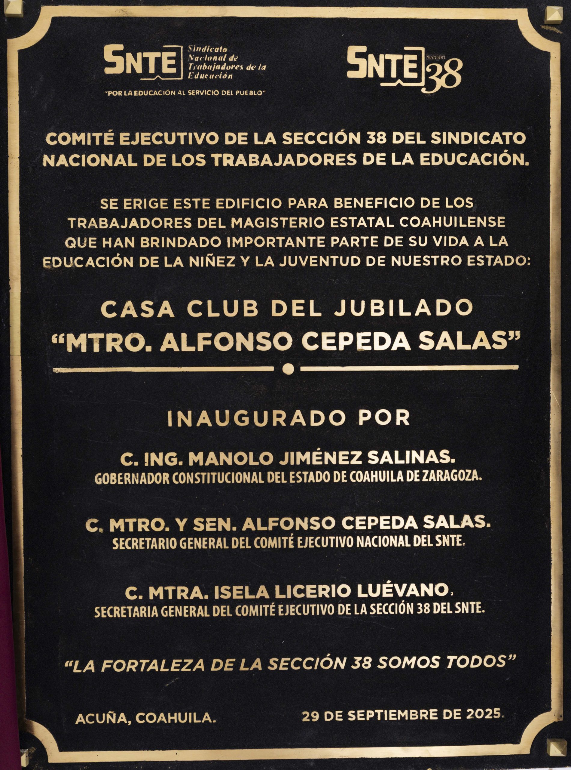 El secretario general del Sindicato Nacional de Trabajadores de la Educación (SNTE), maestro Alfonso Cepeda Salas, inauguró en Ciudad Acuña la Casa Club del Jubilado, símbolo del reconocimiento a quienes entregaron su vida al servicio docente.