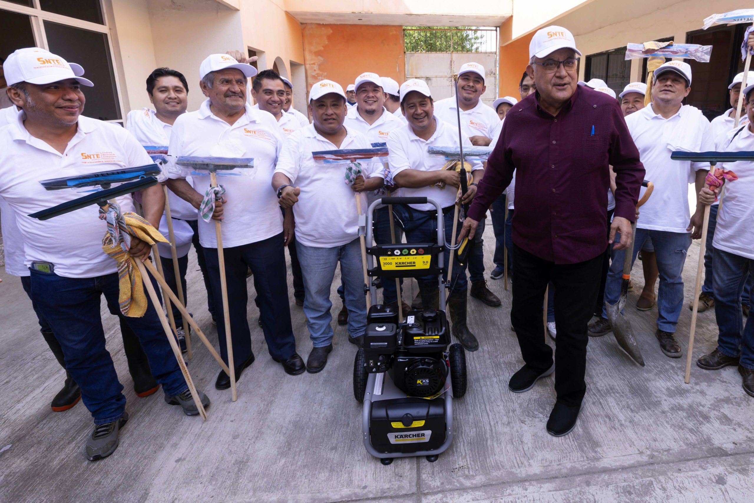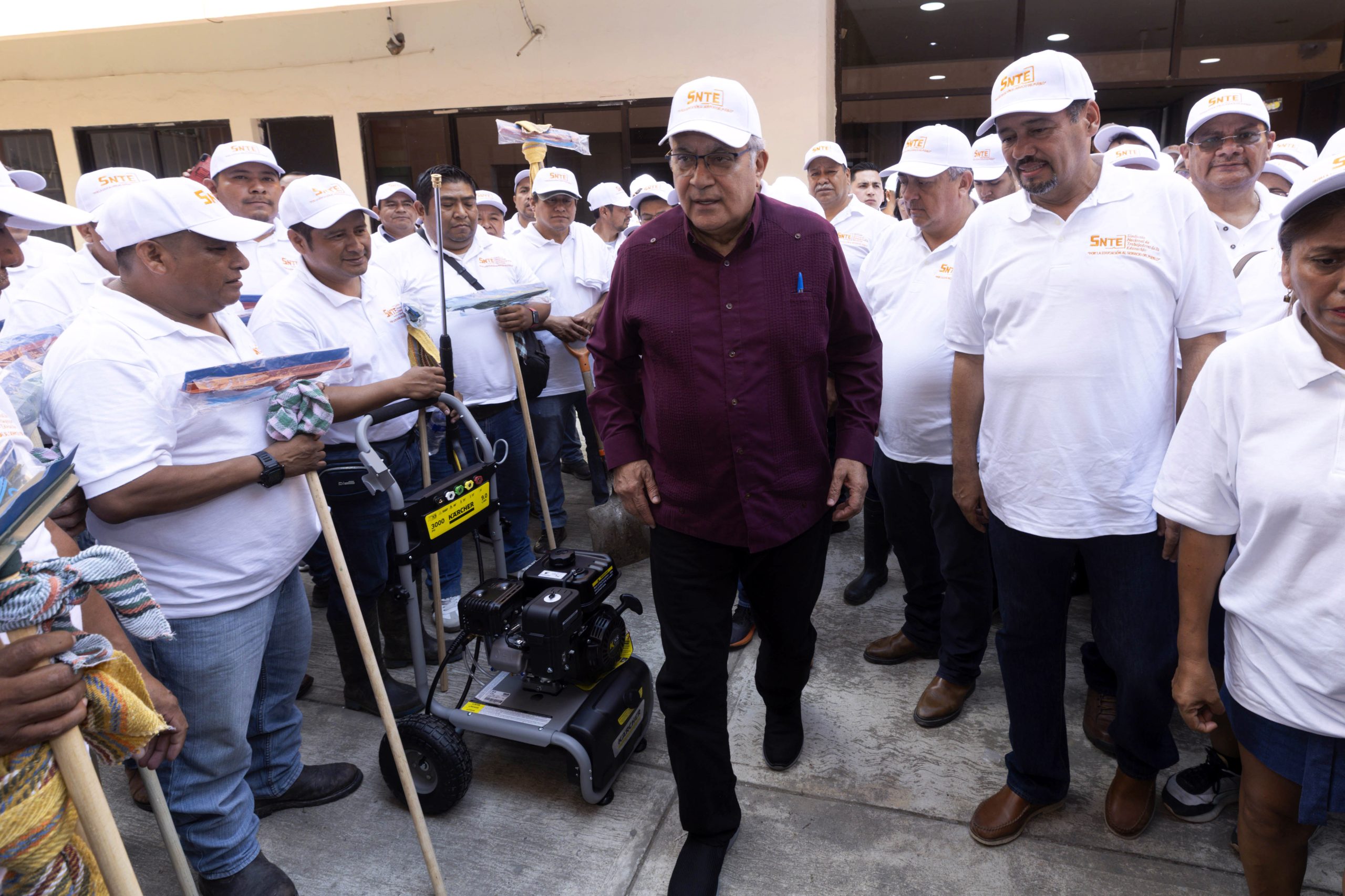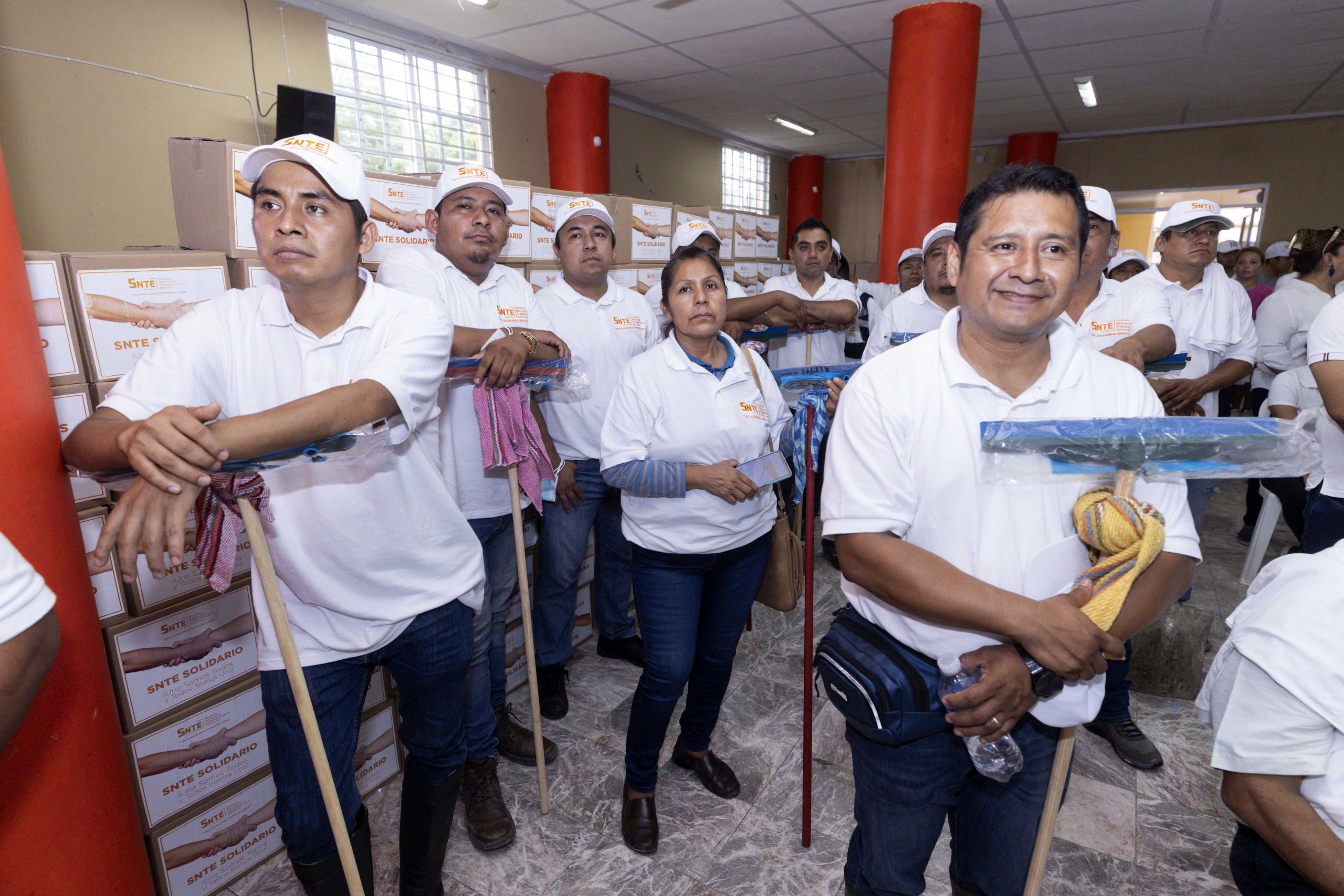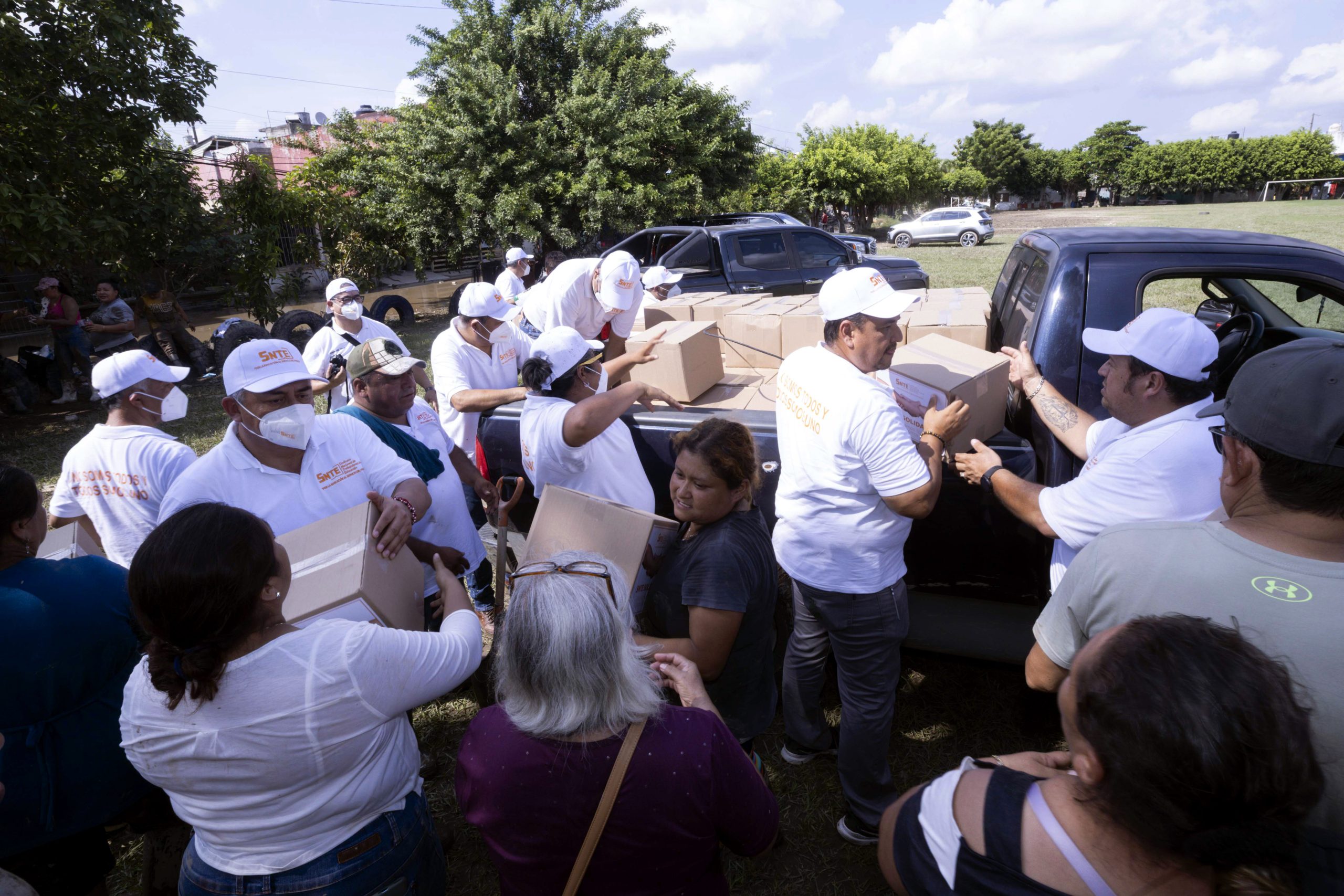 Este fin de semana, el secretario general del Sindicato Nacional de Trabajadores de la Educación (SNTE), maestro Alfonso Cepeda Salas, coordinó los trabajos de distribución en Poza Rica, Veracruz, mientras continúa la recepción de ayuda en los 106 centros de acopio habilitados.