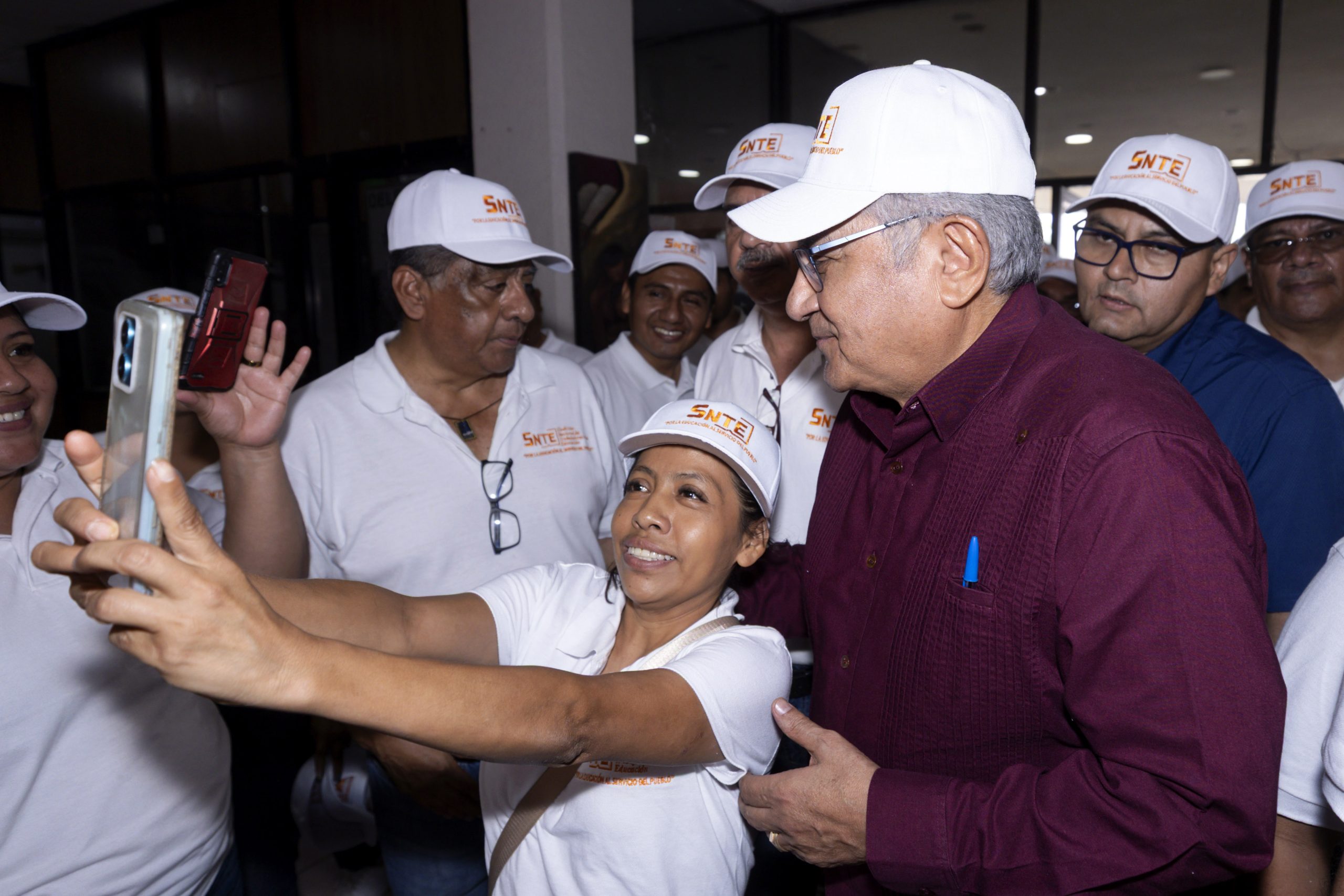 Durante el recorrido, trabajadores de la educación en Veracruz y pobladores agradecieron al dirigente nacional por su respaldo, y también a quienes se han solidarizado desde distintos lugares del país.