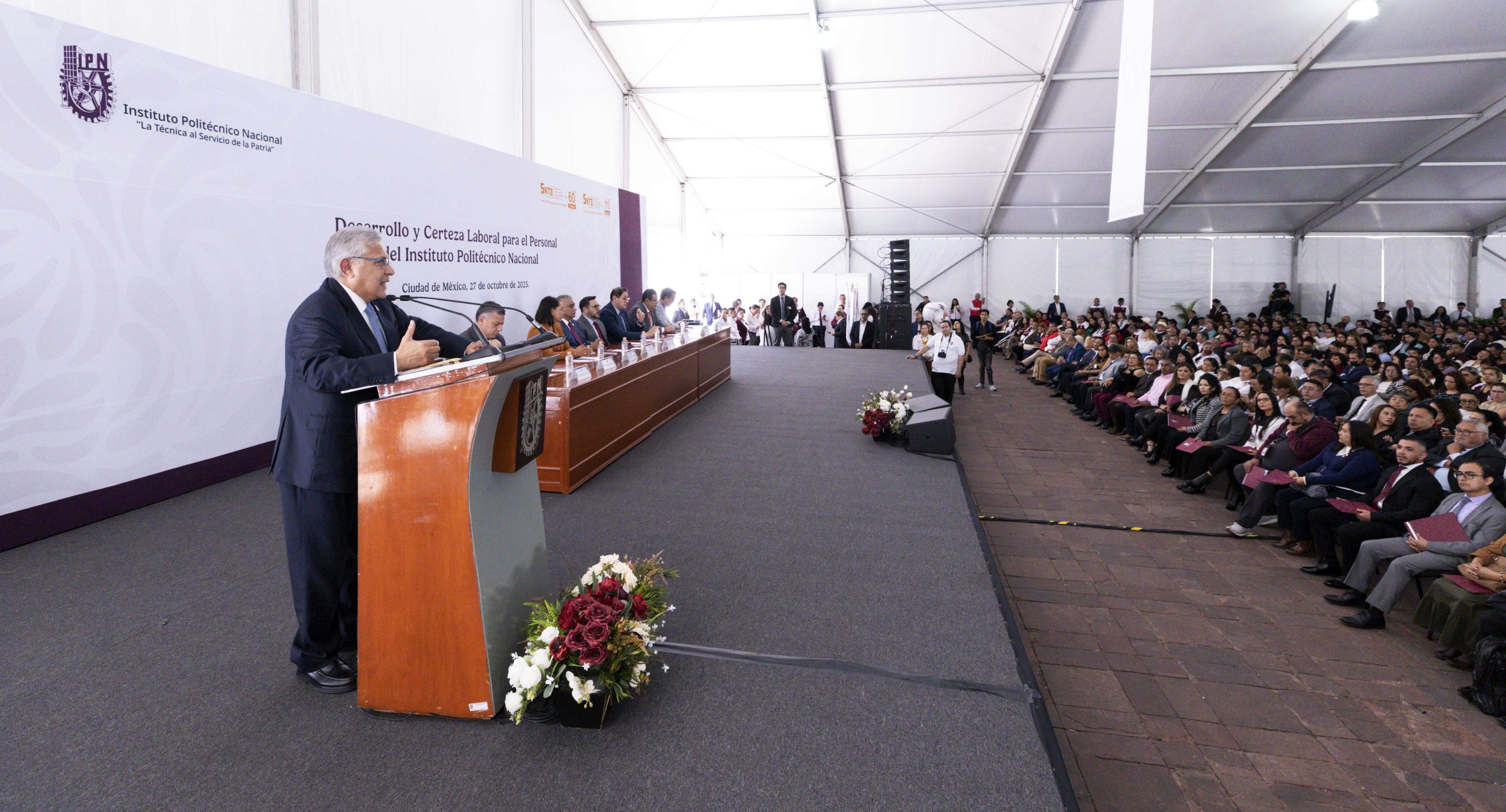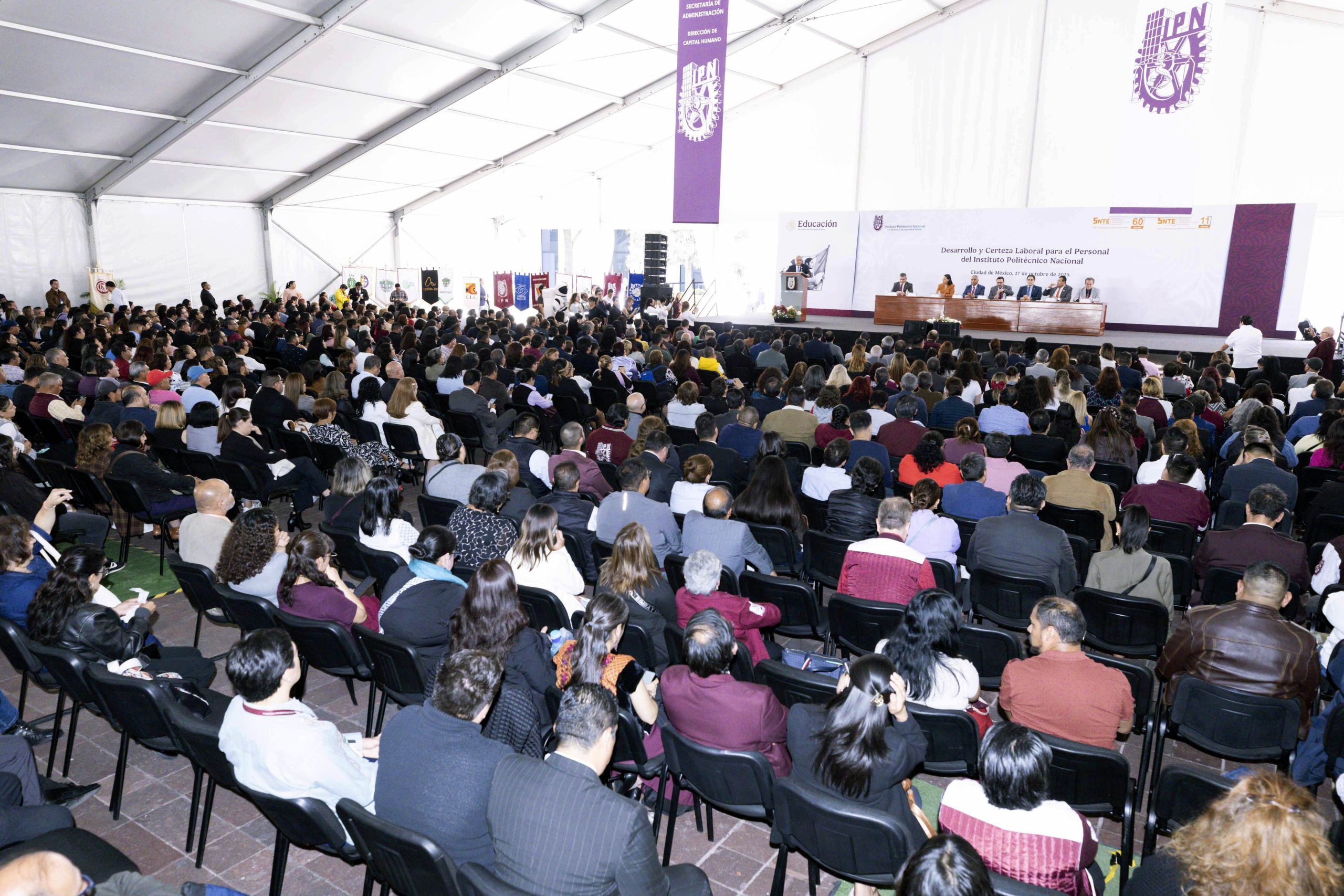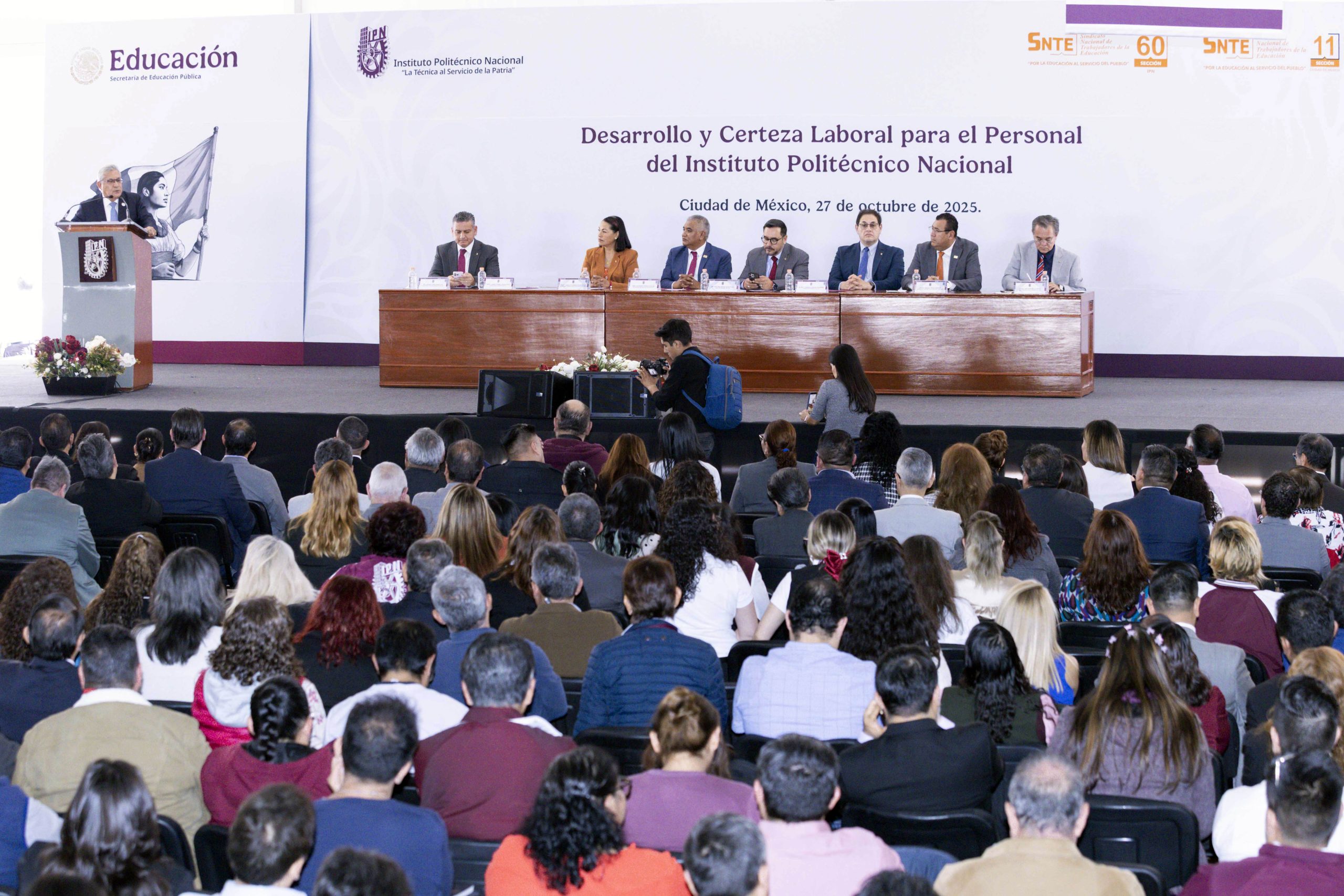 En la ceremonia, reconoció los avances logrados mediante el diálogo entre las autoridades y la dirigencia sindical, como la entrega del Formato Único de Personal, que otorga certeza jurídica a la situación laboral de los trabajadores politécnicos y mejora su acceso a las prestaciones de ley.