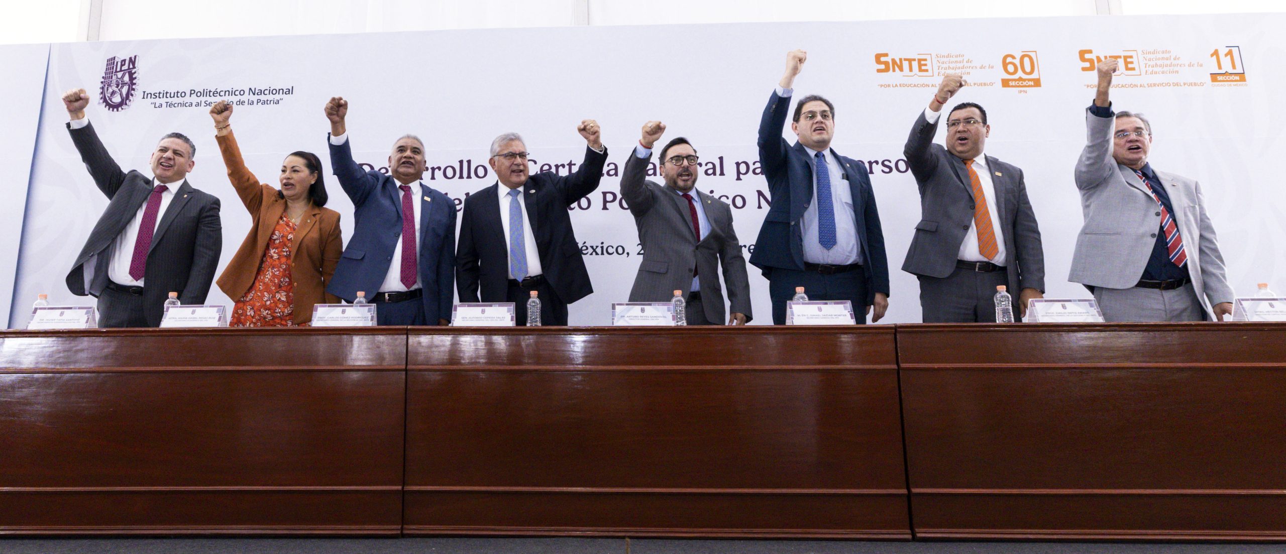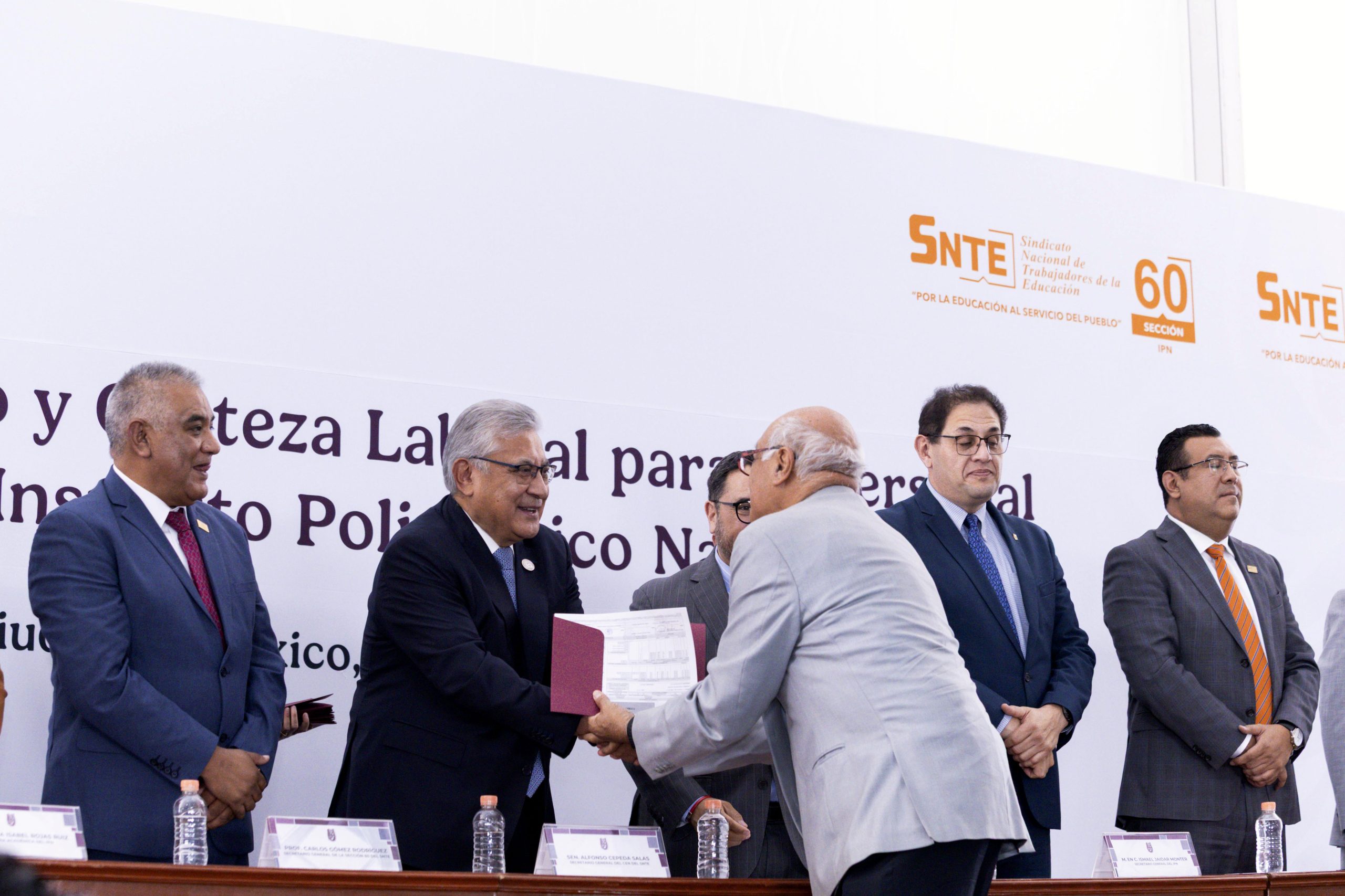 En la ceremonia estuvieron también los profesores Francisco González Mena y José Luis Pérez Márquez, representantes del Comité Ejecutivo Nacional del SNTE en las secciones 11 y 60, respectivamente, además de funcionarios del IPN.