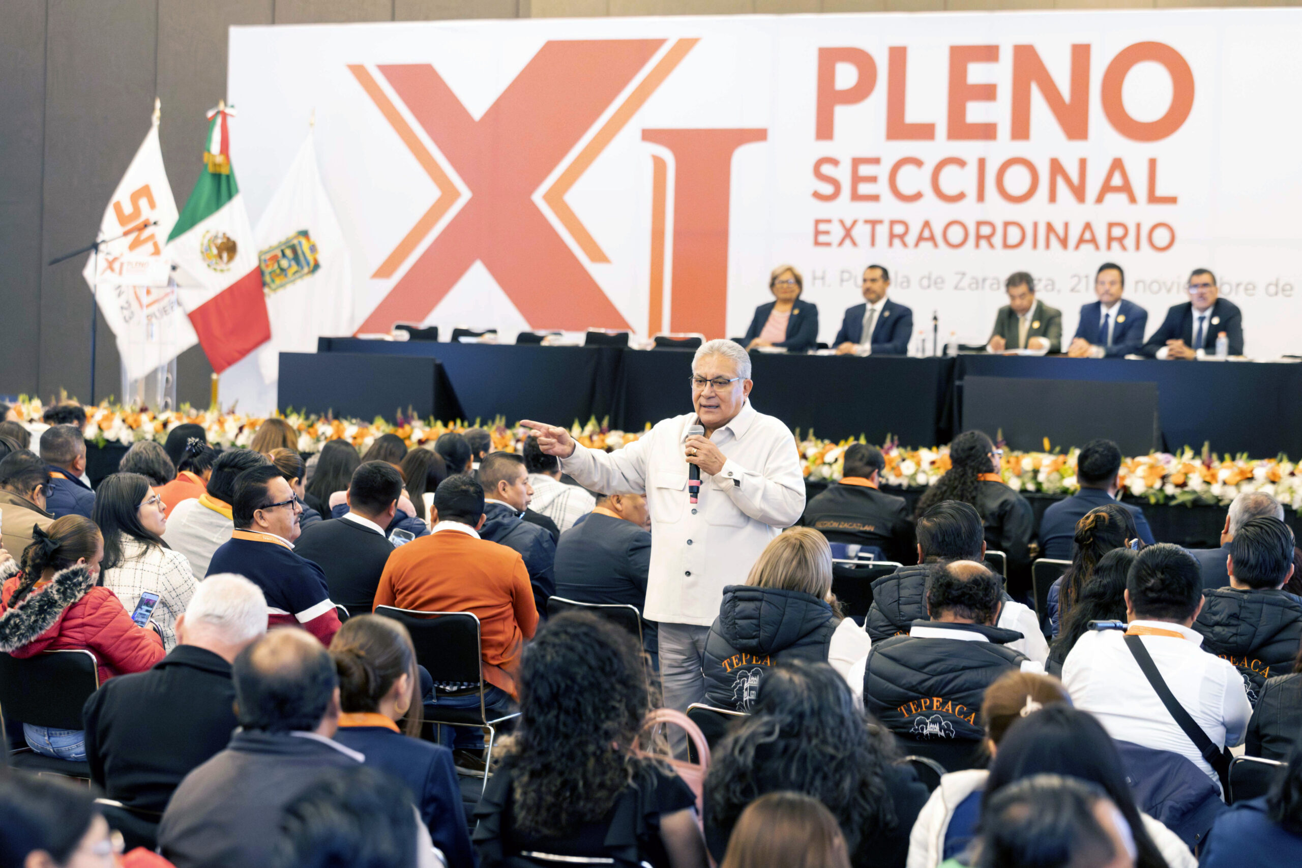 El líder del SNTE participó en la inauguración del XI Pleno Extraordinario de la Sección 23, en Puebla, presidido por el profesor Francisco González Mena, coordinador del Colegiado Nacional de Negociación.