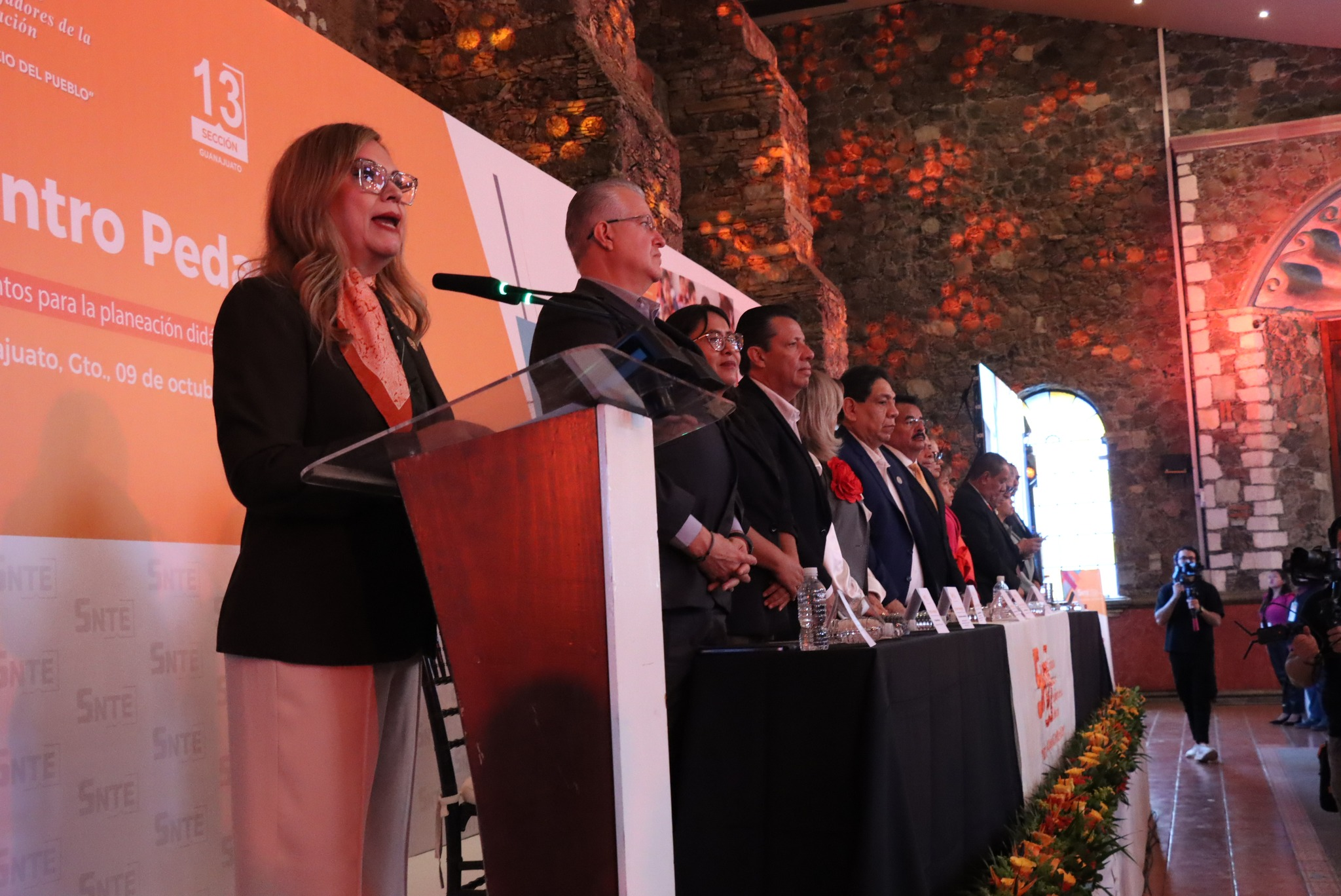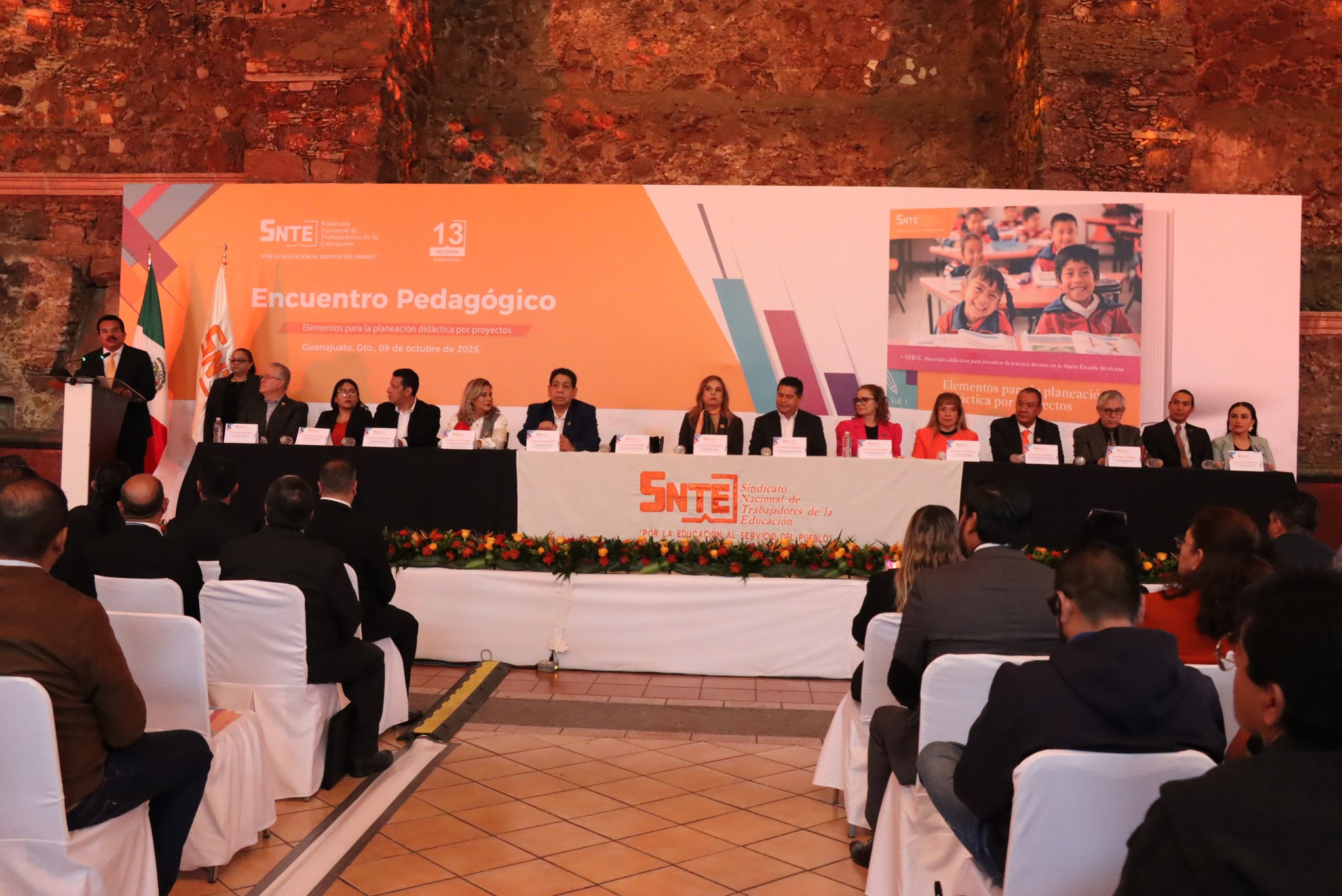 El evento fue encabezado por el Prof. Raúl Espinoza Alonso, Secretario General de la Sección 13 del SNTE, quien estuvo acompañado por la Mtra. Juana Imelda Infante Arratia, Coordinadora del Colegiado Nacional de Profesionalización Docente, Desarrollo Educativo y Fomento Cultural; la Mtra. Alicia Flores Escobar, la Mtra. Adriana de Jesús Villa Huizar y el Mtro. Jorge Antonio Alfaro Rivera, integrantes del Comité Ejecutivo Nacional del SNTE, así como por autoridades educativas y docentes participantes.