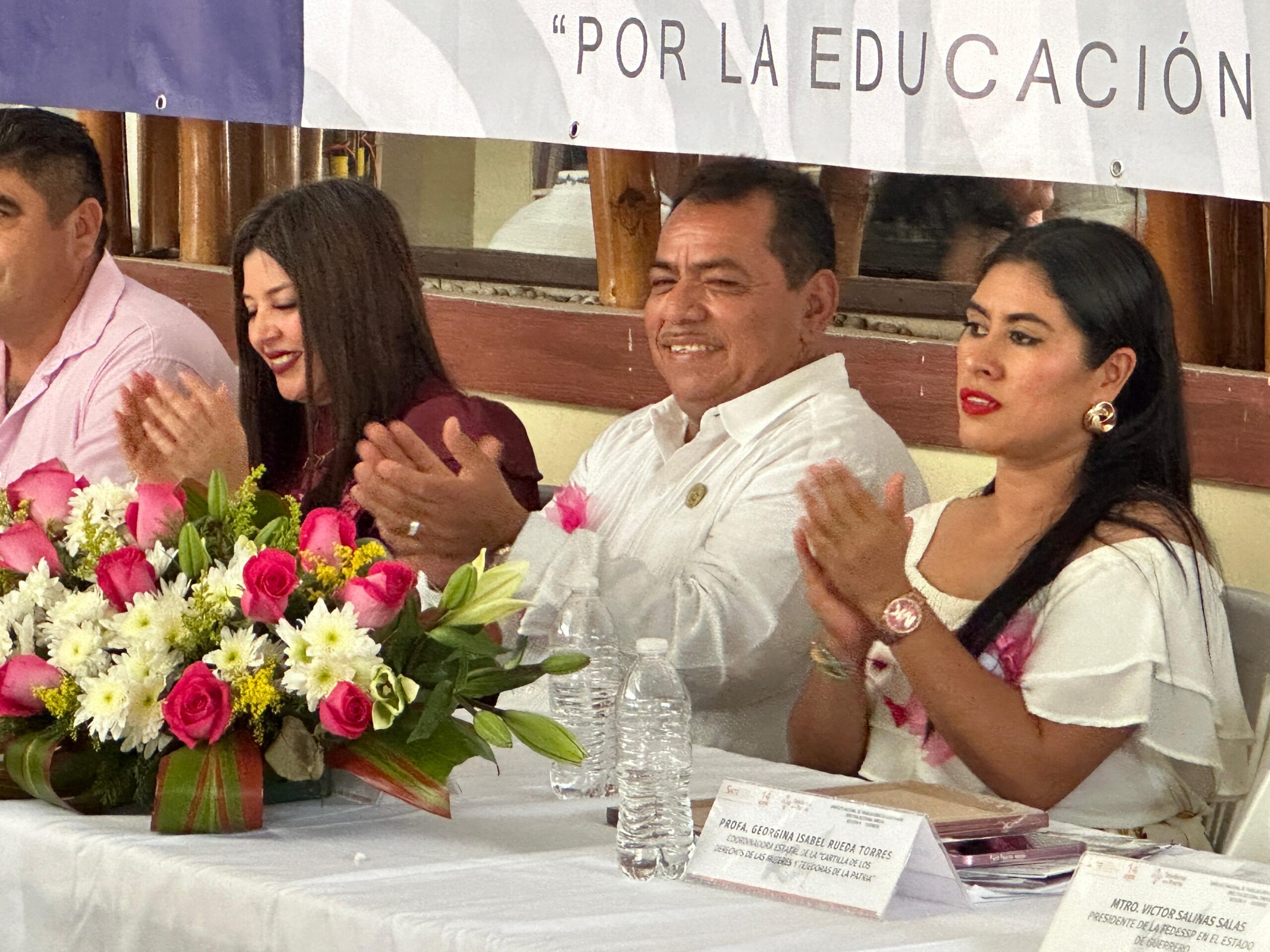 Estuvieron presentes los integrantes del equipo nacional del CEN del SNTE, la Coordinadora Estatal de Cartilla de los Derechos de las Mujeres y Tejedoras de la Patria, Profa. Georgina Rueda Torres, el Secretario de Organización 5, Prof. Rigoberto Valdovinos y el Presidente Colegiado de la FEDESSP en Guerrero, Prof. Víctor Salinas Salas.