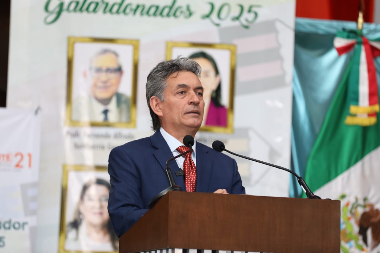 El Mtro. Francisco Martínez, expresó su reconocimiento y felicitación a las y los galardonados, señalando que con su trabajo y vocación han impactado positivamente el proceso educativo de niñas, niños y adolescentes, así como coadyuvado a forjar la grandeza de Nuevo León, mediante la formación de buenos ciudadanos.