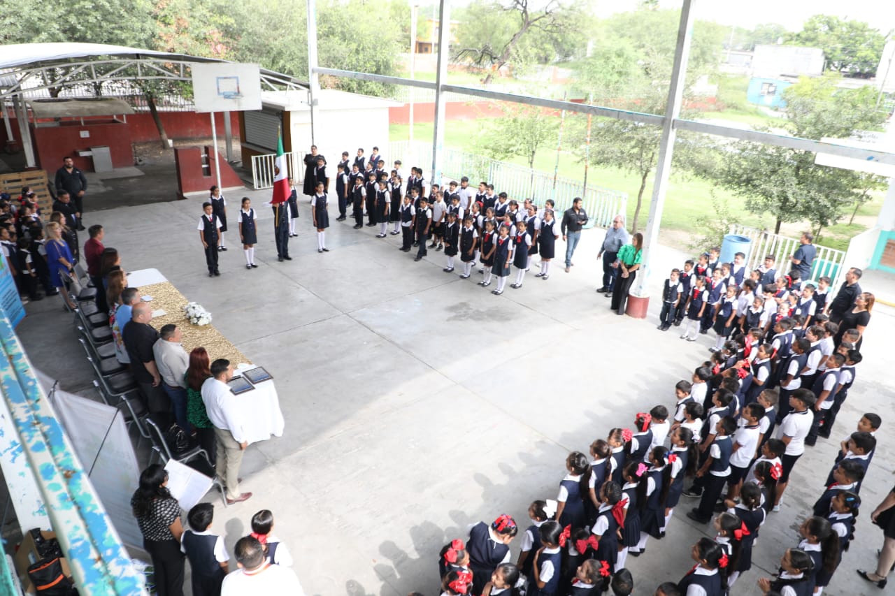 El Mtro. Francisco Martínez reconoció el trabajo que realiza la comunidad educativa de esta primaria, señalando que este premio es producto del trabajo en equipo por parte de directivos, maestros, alumnos y padres de familia. Asimismo, agradeció a las niñas y niños de este plantel haber puesto el nombre de Nuevo León en los primeros lugares nacionales, lo cual refleja el excelente trabajo que hacen las y los maestros del estado en las aulas.