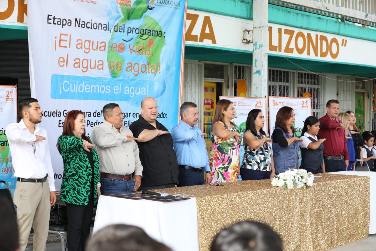 Durante esta ceremonia se contó con la presencia del Prof. Santiago Alain Alcorta Guerra, Titular de la Organización VI de la Sección 21, y del Prof. Miguel Ángel Salinas Pérez, Titular de la Secretaría de Trabajos y Conflictos de la Sección 21, así como de los responsables seccionales del proyecto “El Agua es Vida el Agua se Agota”, la Profa. Laura María Martínez Garza y José Iván Rivas Villanueva.