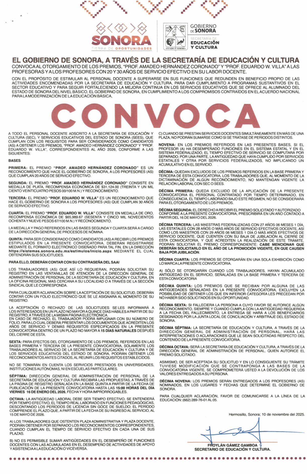 Les informamos a las compañeras y compañeros que cumplen 20 años de Servicio Docente que se les otorgará un estímulo económico y la medalla “Prof. Amadeo Hernández”, así como a los que cumplen 30 años de Servicio Docente, se les otorgará un estímulo económico y la medalla “Prof. Eduardo W. Villa”.