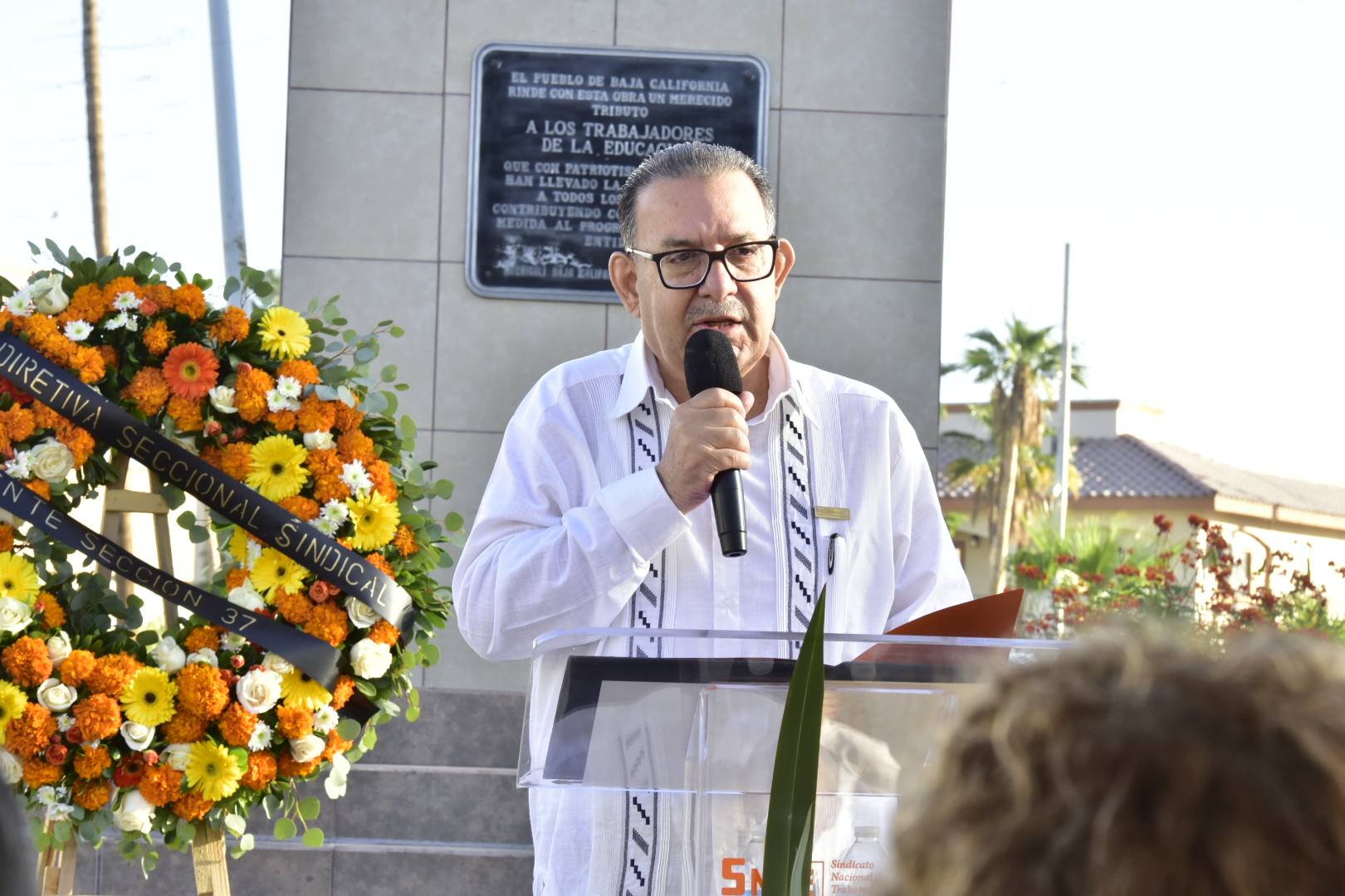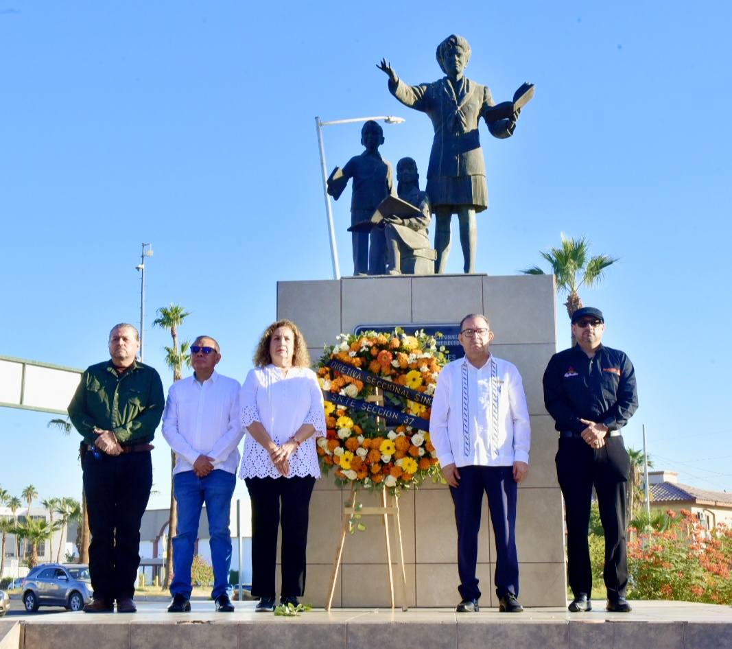 El acto contó con la presencia de la Mtra. Irma Martínez Manríquez, Secretaria de Educación de Baja California; el Prof. Miguel Ángel Estrella Montoya, Presidente del Fondo Mutualista de Defunción; así como los Representantes del CEN del SNTE en la entidad, maestros Jaime García Roque y Felipe Antúnez Luna, quienes, junto a integrantes de la Directiva Seccional sindical y ampliada, realizaron una guardia de honor en el Monumento al Maestro como símbolo de respeto y gratitud.