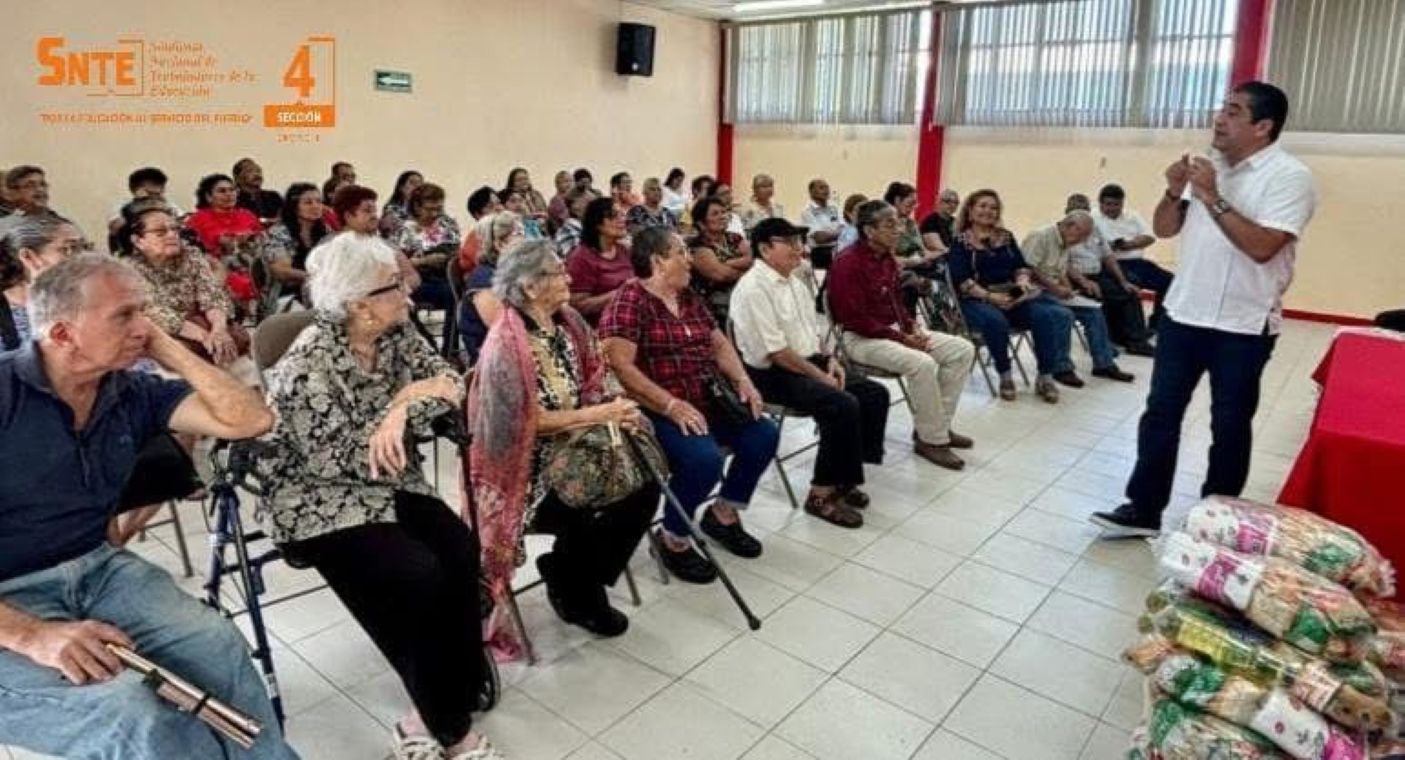 Esta iniciativa se representó en esta ocasión en la Región de Carmen, un acompañamiento directo y sensible hacia las y los trabajadores de la educación jubilados que perciben una pensión mensual reducida, brindándoles apoyo como muestra de gratitud por los años dedicados al servicio educativo.