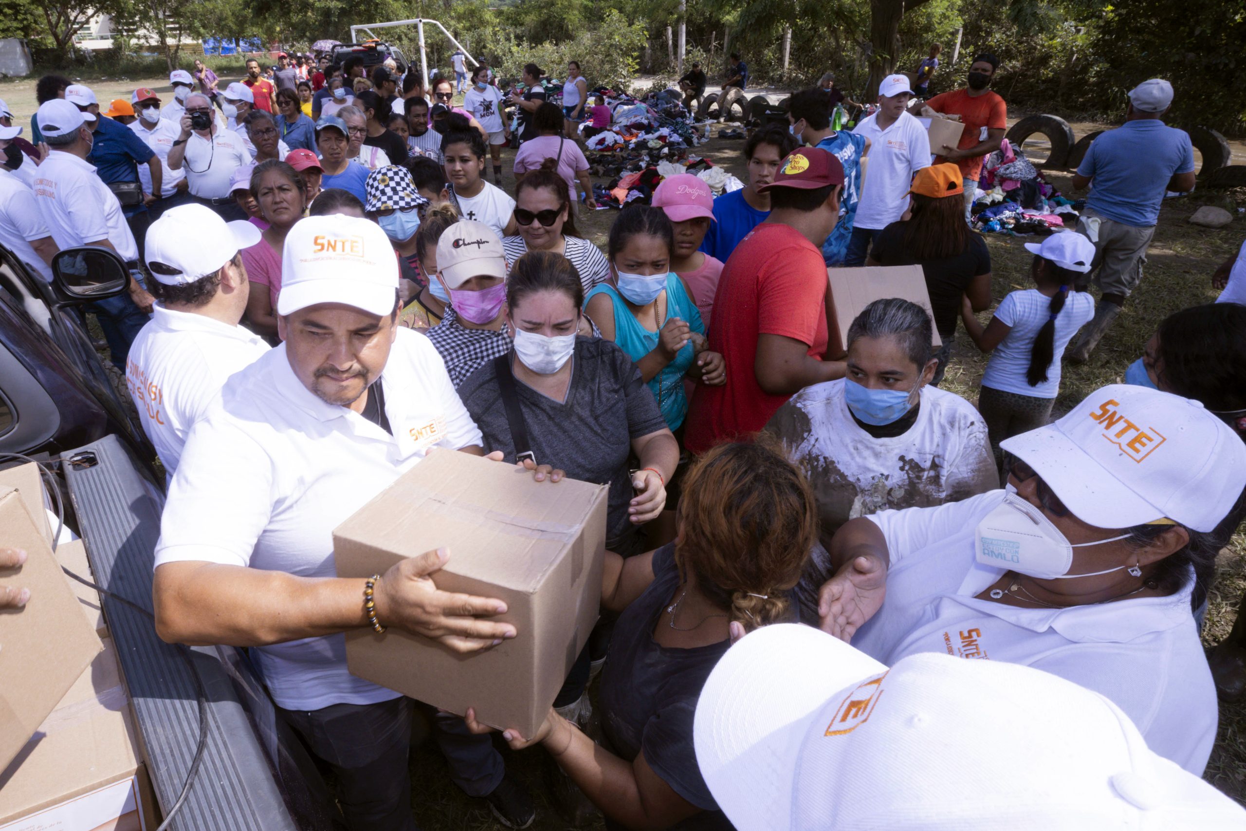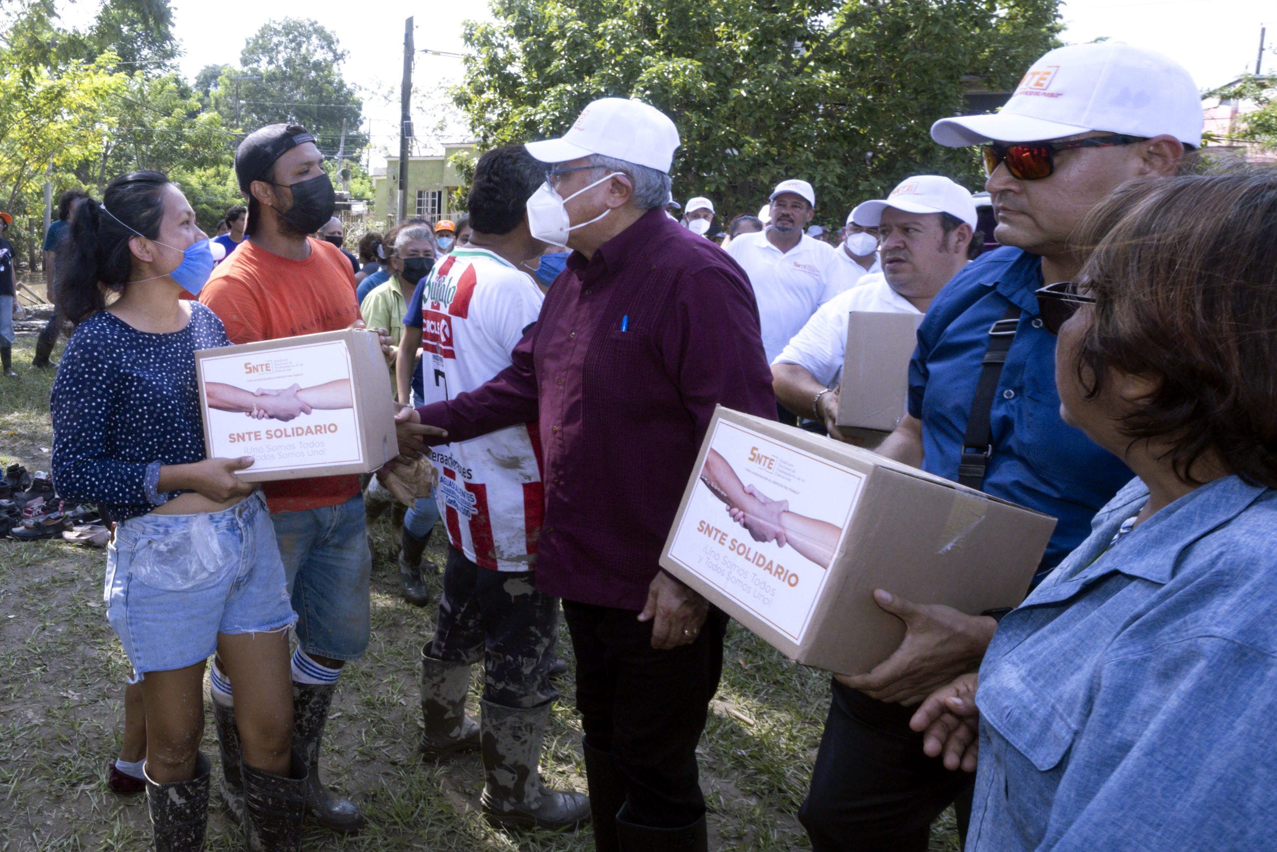 Una vez más, la solidaridad de la gran familia magisterial se manifestó con quienes lo necesitan. El SNTE entregó las primeras 25 mil despensas a damnificados por las lluvias en Veracruz e Hidalgo, así como artículos de primera necesidad, ropa, gel antibacterial y cubrebocas.