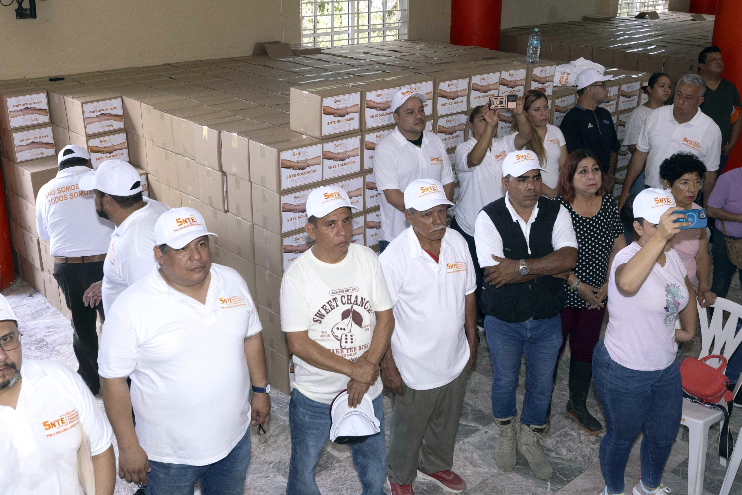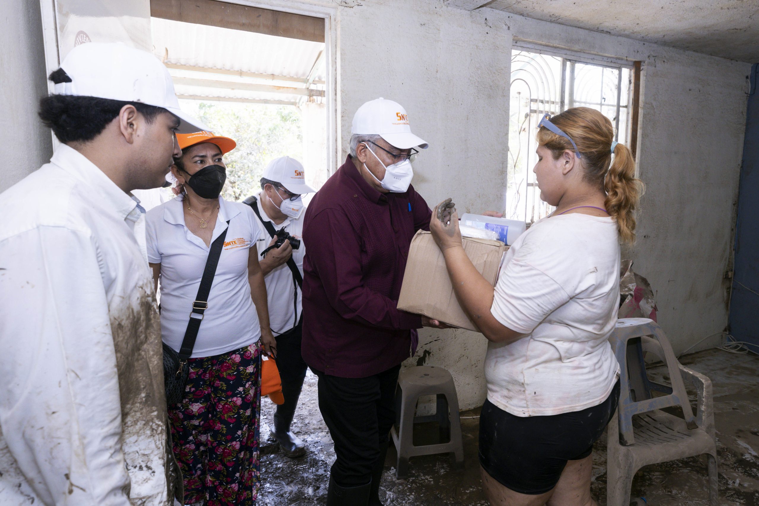 Este fin de semana, el secretario general del Sindicato Nacional de Trabajadores de la Educación (SNTE), maestro Alfonso Cepeda Salas, coordinó los trabajos de distribución en Poza Rica, Veracruz, mientras continúa la recepción de ayuda en los 106 centros de acopio habilitados.